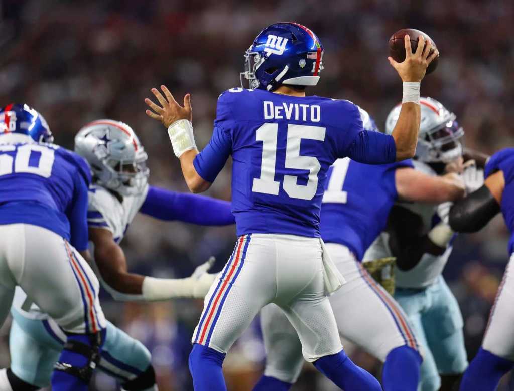 The Giants were blown out by halftime, trailing 28-0. In that first half, Dallas had 368 total yards of offense to 27 for the Giants, who had undrafted Tommy DeVito making his first career start at quarterback.