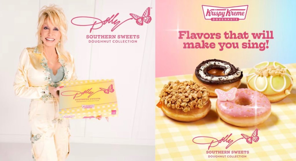 In an unparalleled fusion of sweetness, Krispy Kreme and global icon Dolly Parton have joined forces to introduce the Dolly Southern Sweets Doughnut Collection. This unprecedented collaboration brings together the beloved flavors of the South in a delectable assortment of four new doughnuts, available for a limited time at participating Krispy Kreme locations.