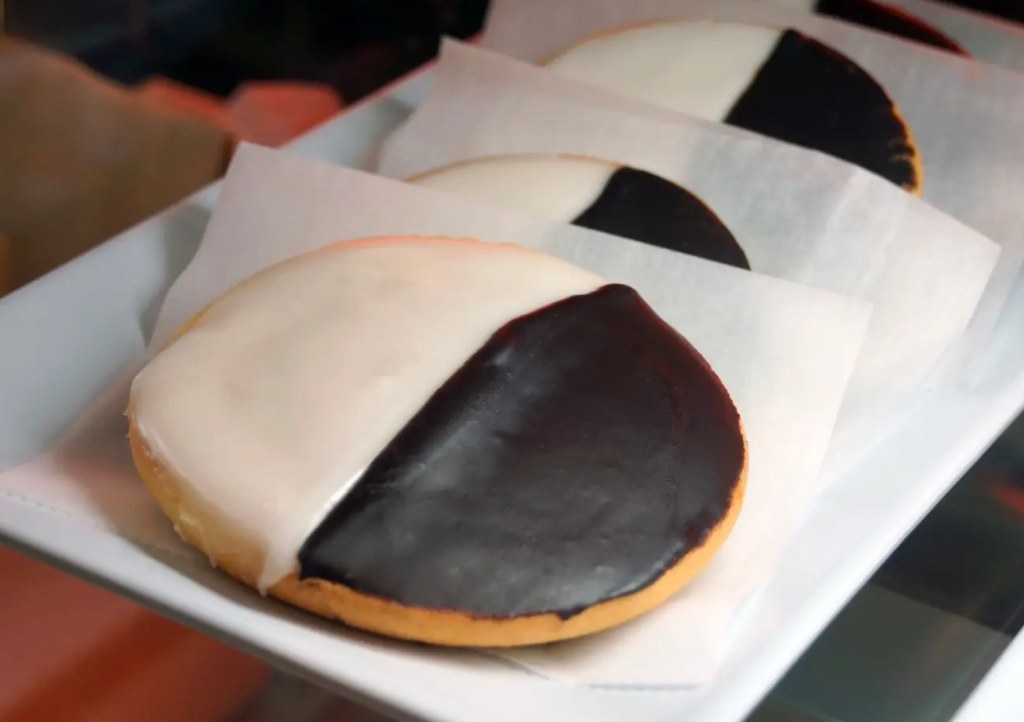 A staple in local German and then Jewish neighborhoods for well over a century and famously interpreted as a call to racial harmony on the hit sitcom “Seinfeld,” the actual black and white is a half-moon of angel food cake topped with white fondant and chocolate icing, still consumed as frequently in some quarters as when it made its debut in Yorkville, back in 1902 at the long-gone Glaser’s Bake Shop.