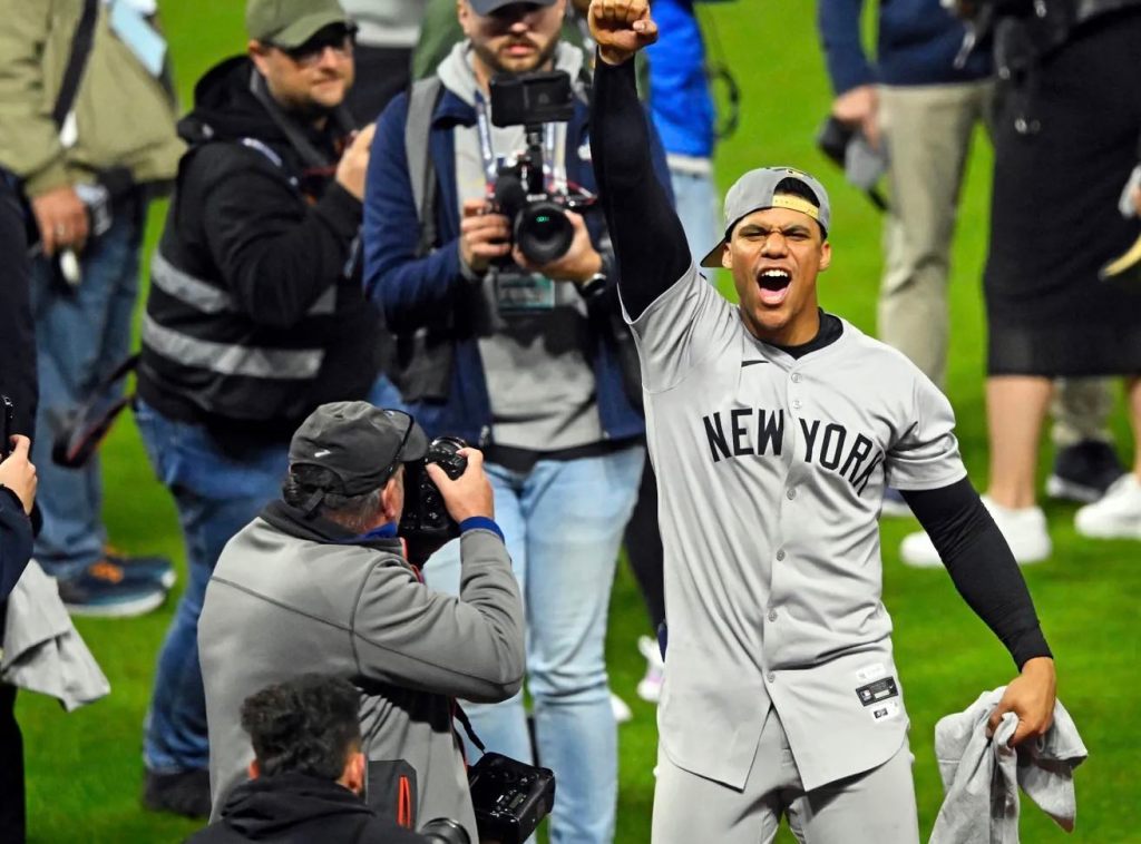 Juan Soto smashed a three-run home run in the 10th inning on Saturday that lifted the New York Yankees over Cleveland 5-2 and into their first World Series since 2009.