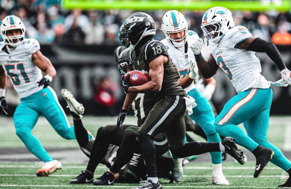 Isaiah Williams briefly gave the Jets hope with a 78 yard punt return to cut the Dolphins lead to 21 – 7. It was the lone bright spot for the Jets.