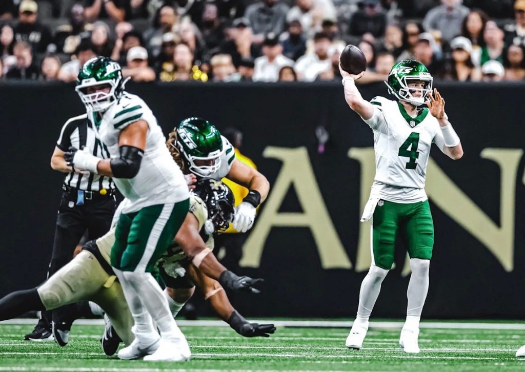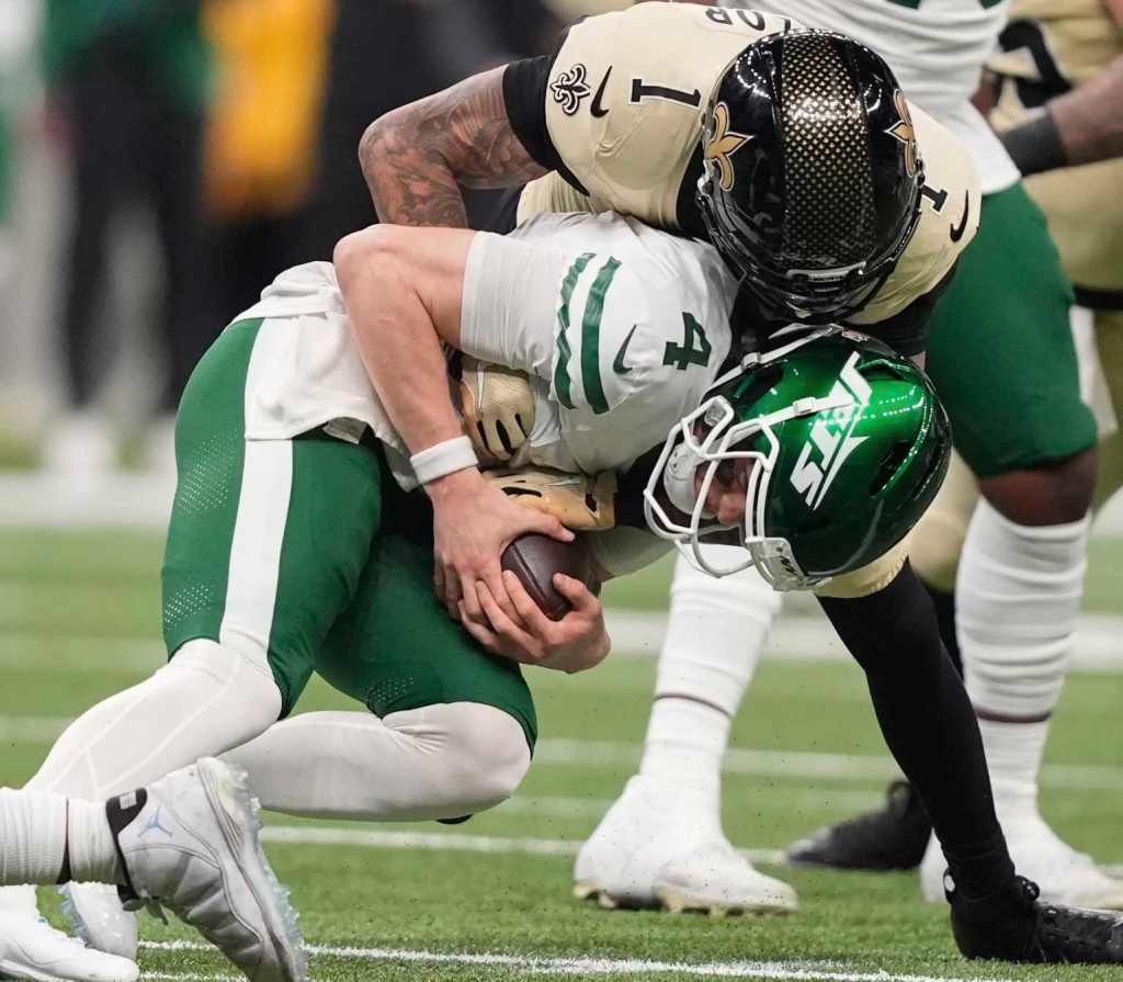 Saints rookie quarterback Tyler Shough carved up the Jets defense finishing 32 for 49 with 308 yards and a touchdown pass.